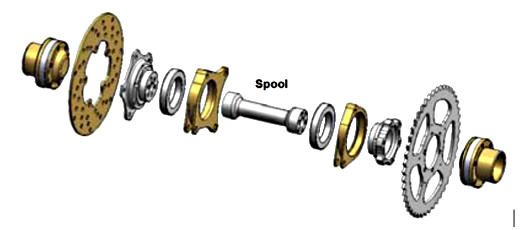 The spool is a way of describing one approach to how the axle should be designed, a question that can puzzle even the best engineers. Should the wheels be linked to each other, such that they each turn in lock step, or should they each wheel completely independently?